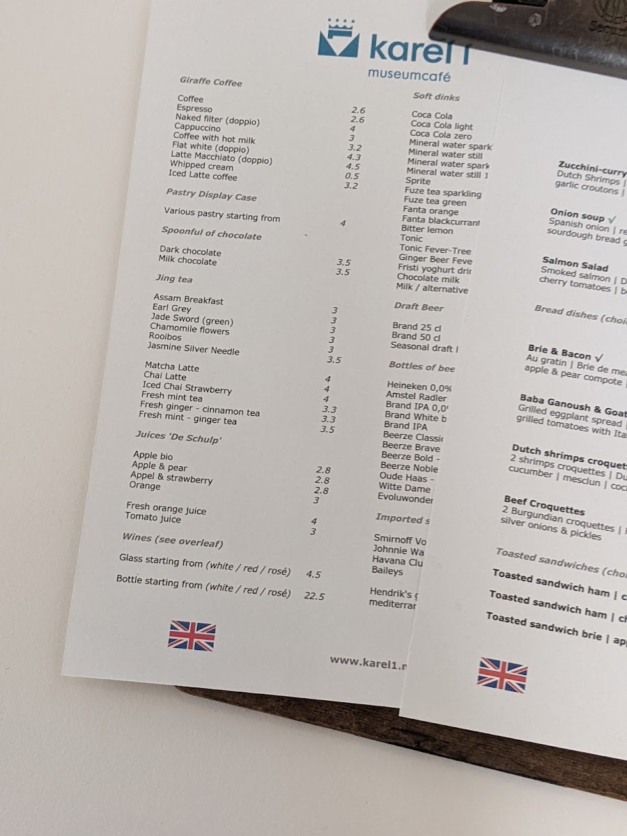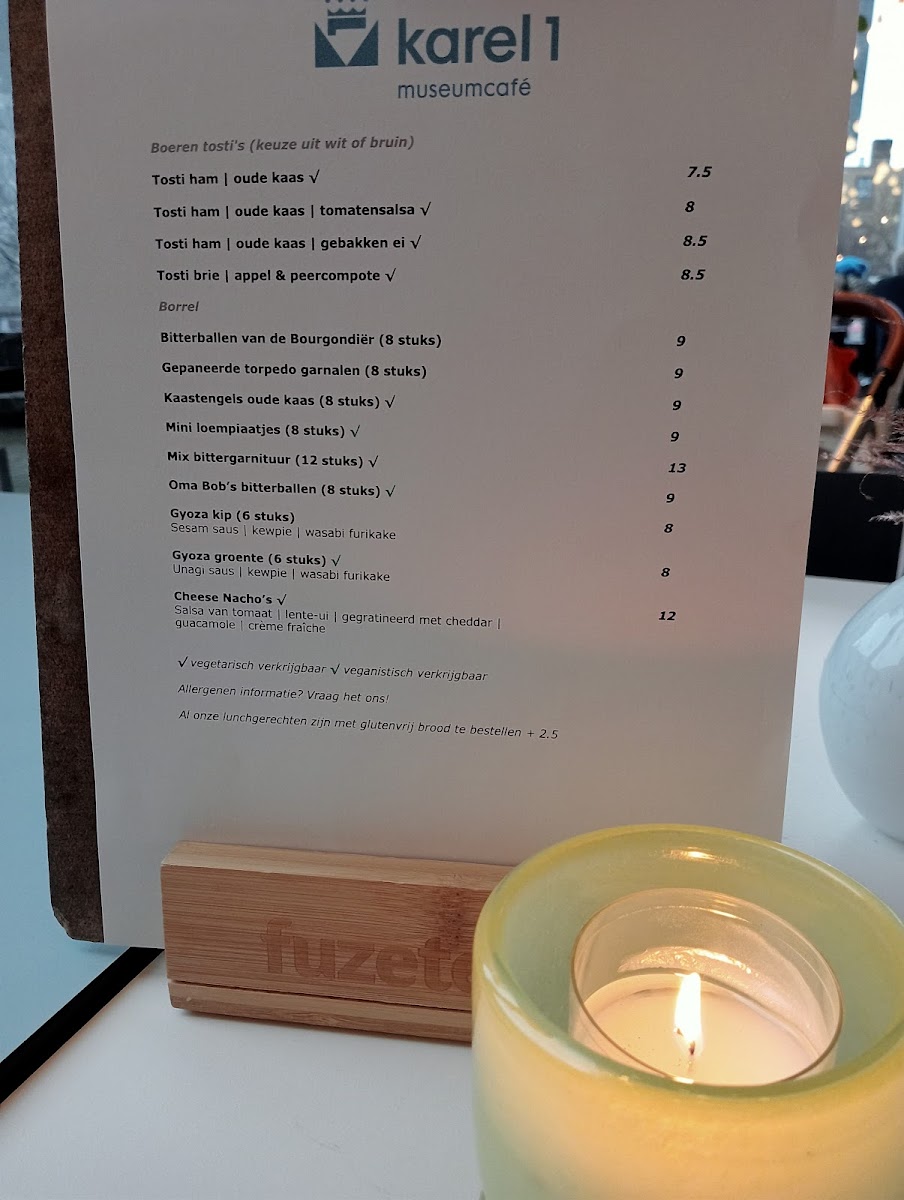 Enjoy your meal on the stunning terrace, complete with views of the museum and a tranquil lake, making Karel 1 an ideal start to your weekend.